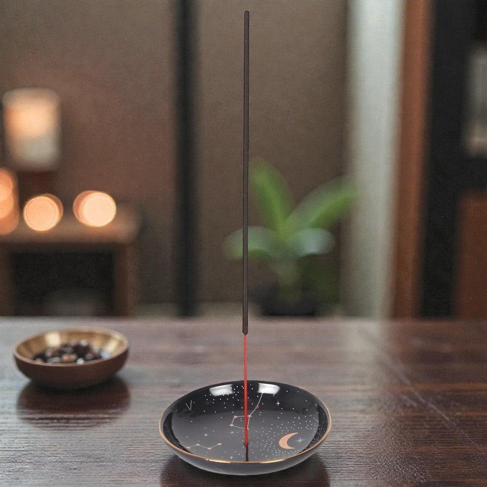 Manchmal braucht es keinen großen Tapetenwechsel – ein Räucherstäbchen, ein tiefer Atemzug und dieser hübsche Räucherstäbchenhalter im Sternenhimmel-Design reichen völlig aus.