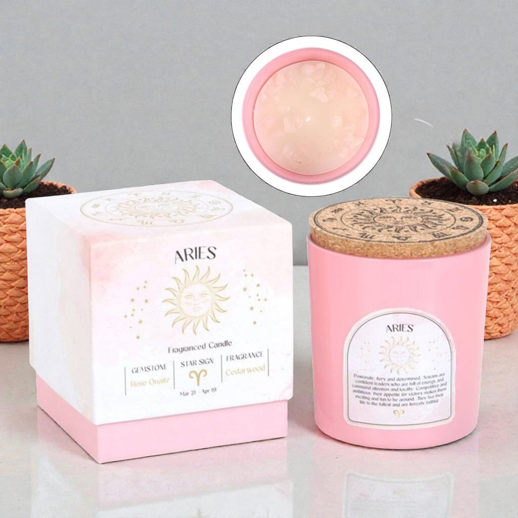 Der warme, leicht erdige Duft von Zedernholz sorgt für eine beruhigende, ausgleichende Atmosphäre – perfekt, um den inneren Widder kurz runterzufahren (ja, auch Feuerzeichen brauchen Pausen). Im Wachs funkeln echte Rosenquarz-Edelsteine, die für eine Extraportion Herzenergie sorgen.